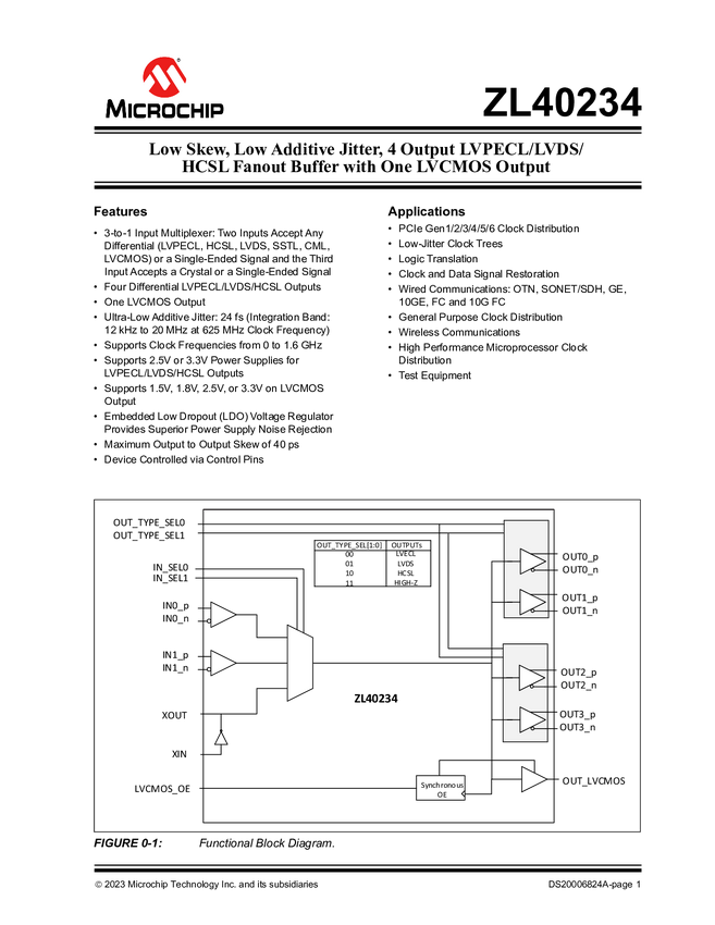 ZL40234 - Low Skew, Low Additive Jitter, 4 Output LVPECL/LVDS/HCSL Fanout Buffer with One LVCMOS Output
