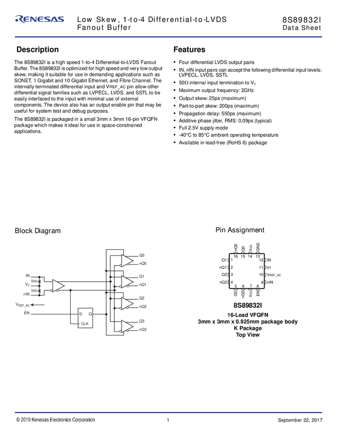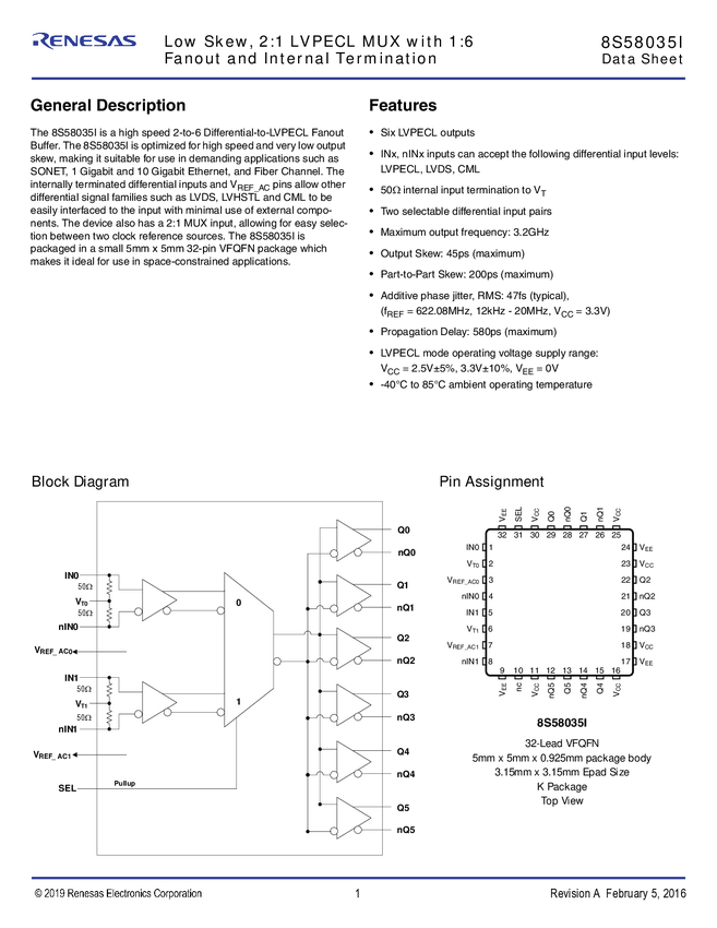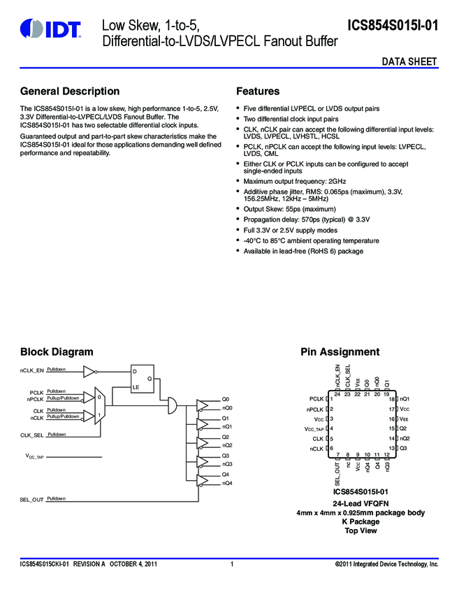 Low Skew,1-to-5 Differential-to- LVDS,LVPECL Fanout Buffer