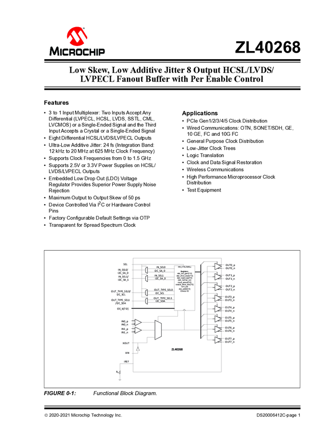 ZL40268 - Low Skew, Low Additive Jitter 8 Output HCSL/LVDS/LVPECL Fanout Buffer with Per Enable Control