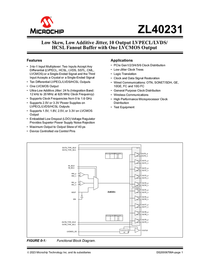 ZL40231 - Low Skew, Low Additive Jitter, 10 Output LVPECL/LVDS/HCSL Fanout Buffer with One LVCMOS Output