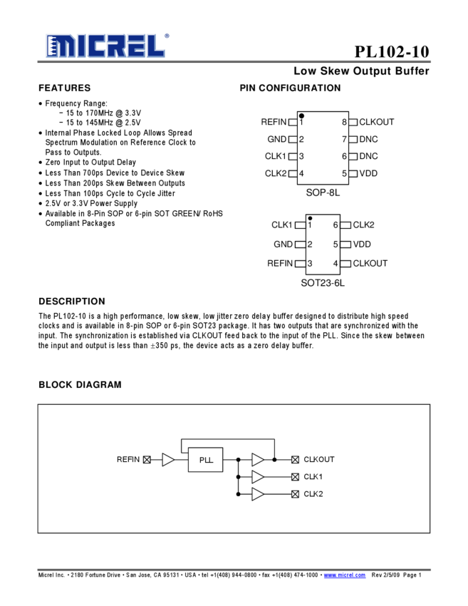 PL123-05/-09 - Low Skew Zero Delay Buffer