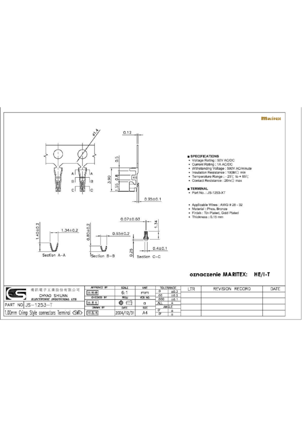 męskie gniazdo RF, antenowe, o wysokość 1.25mm, 1G, 0-6 GHz, do montażu SMT, [IPEX:20279-001E-01, HRS:U.FL-R-SMT]