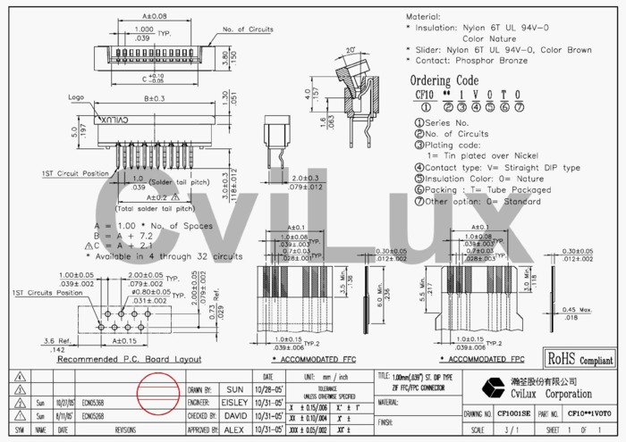 Złącze żeńskie ZIF, 10-stykowe , pionowe, CviLux