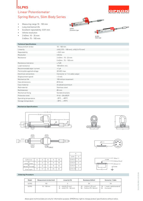 Transduktor Opkon SLPKS-50-D-2K-1M, 28 V/DC, Długość skoku 50 mm