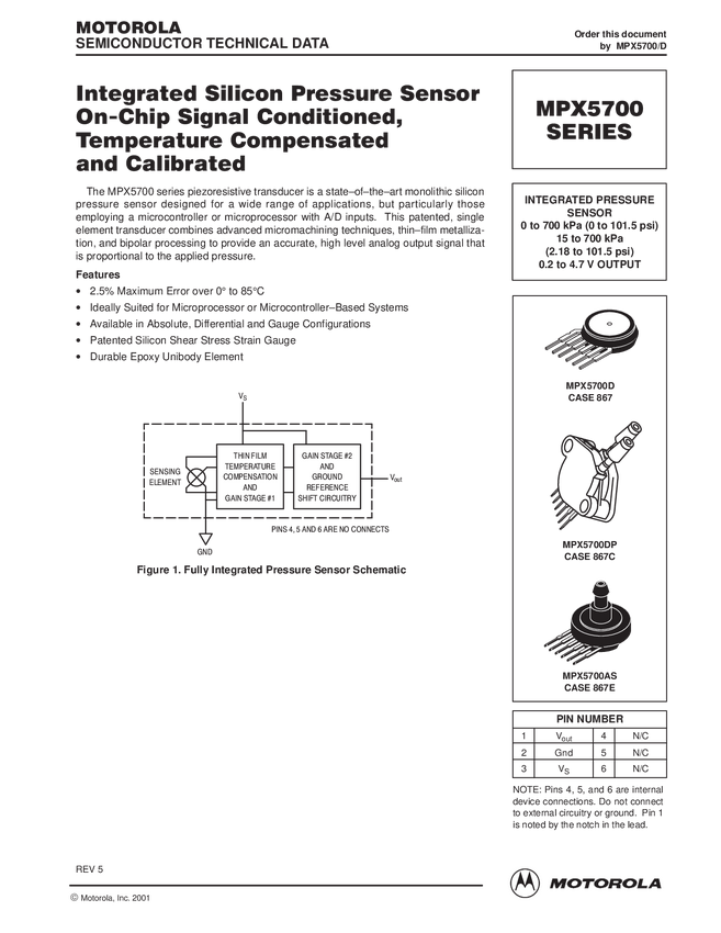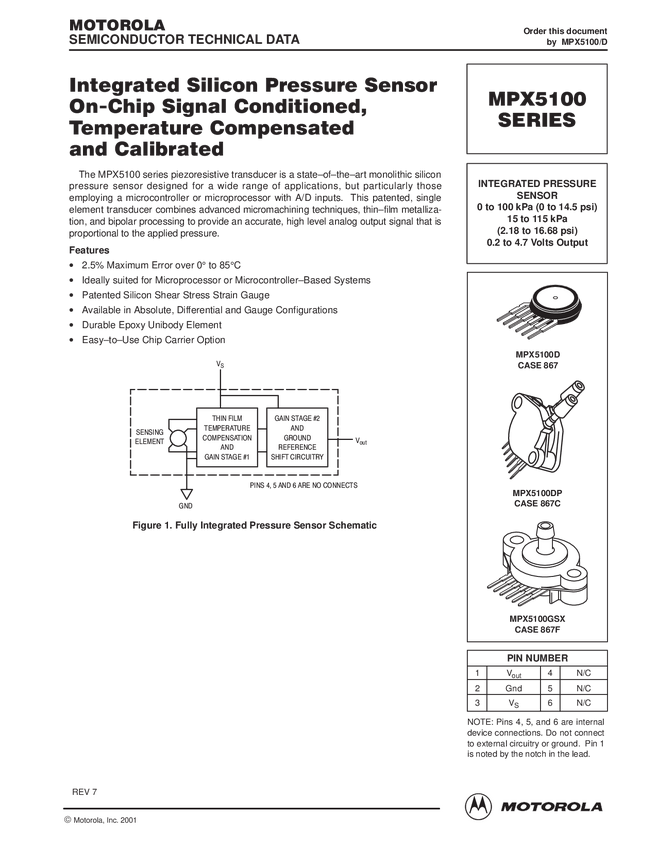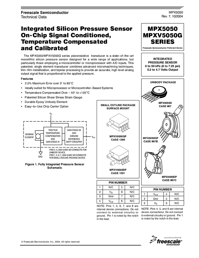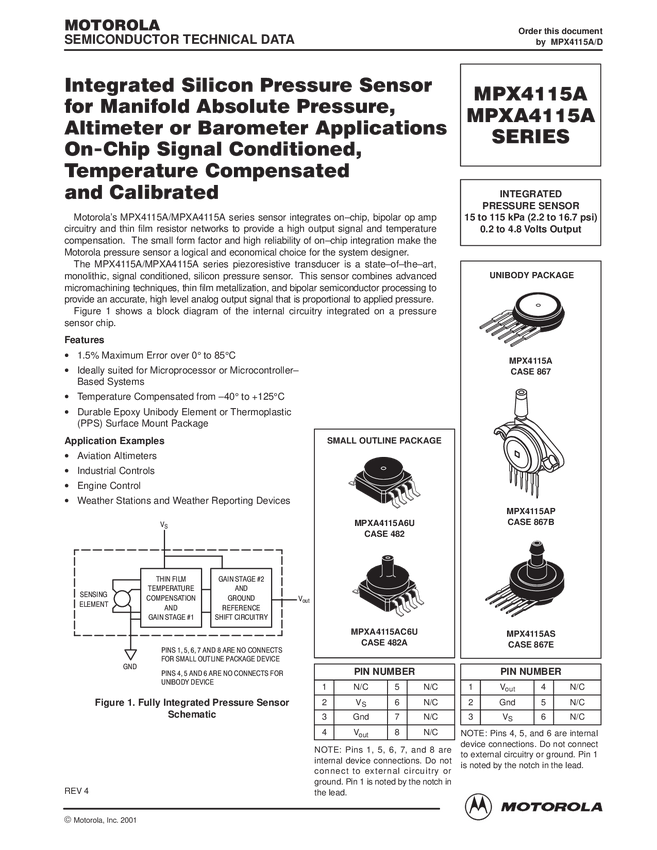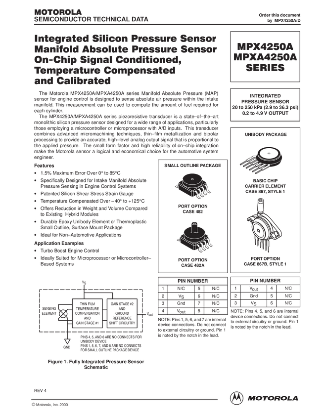 15-115kPa, 0,2-4,8Volt Absolute single port skompensowany temperaturowo/skalibrowany/signal-conditioned Automotive accuracy