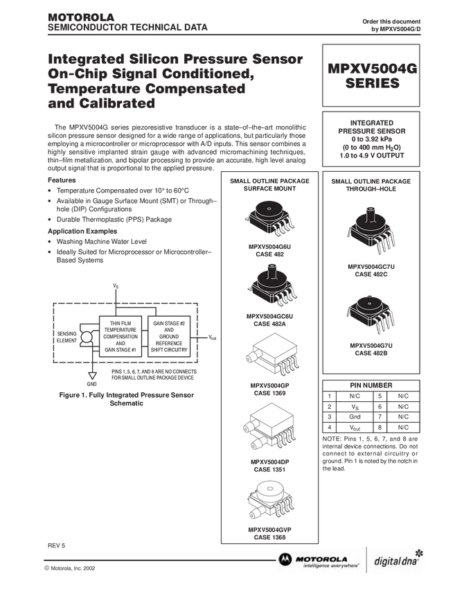 20-250kPa, 02-4,9Volt Absolute single port skompensowany temperaturowo/skalibrowany/ signal conditioned Automotive accuracy