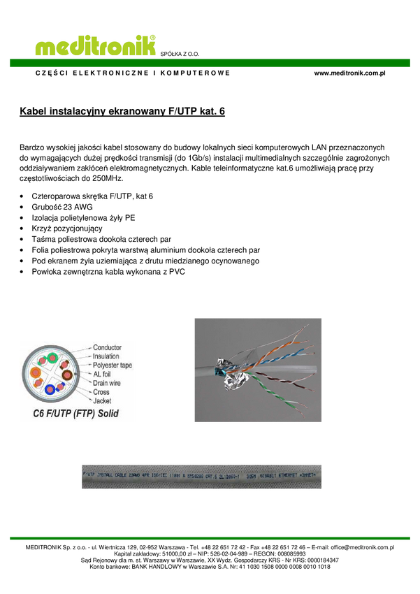 F/UTP kabel kat.6 PVC 4x2x23AWG 3nnet skrętka 305m