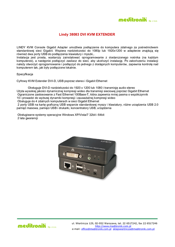 Przedłużacz KVM DVI-D i audio medium skrętka cat6