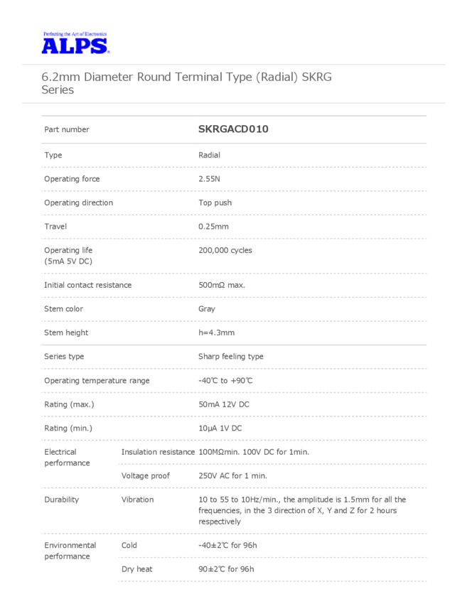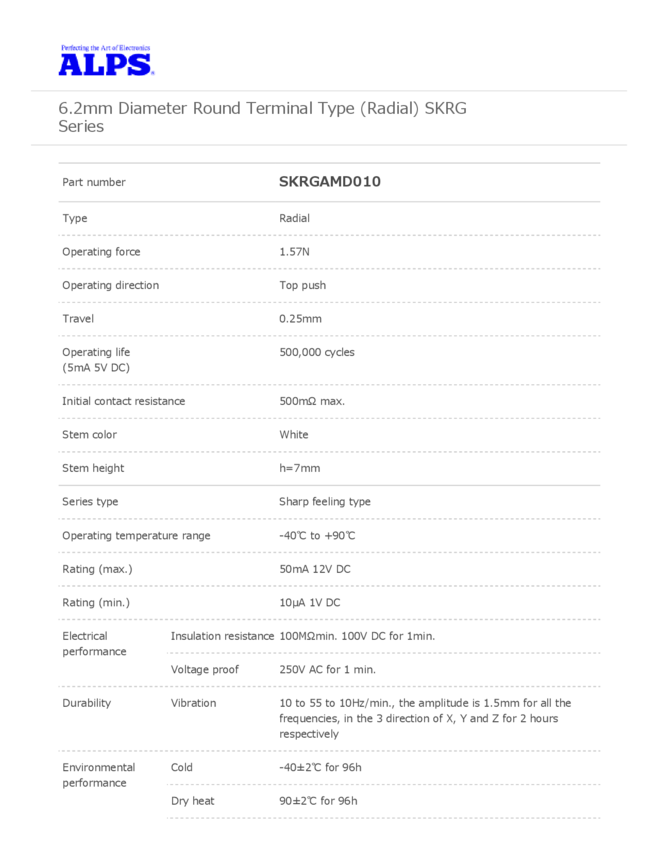 Switch Tactile N.O. SPST Button PC Pins 0.05A 12VDC 1.27N Thru-Hole Radial Tape