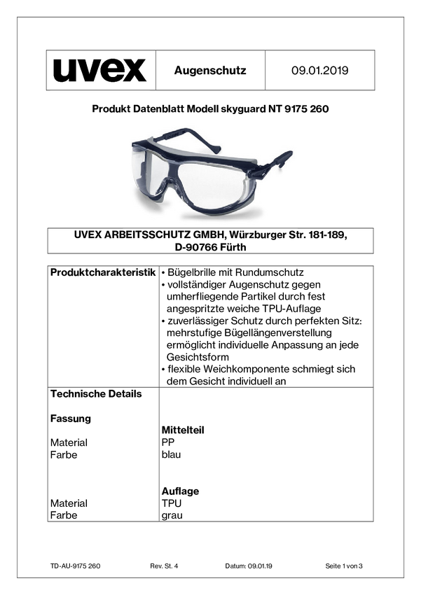 uvex skyguard NT 9175260 Okulary ochronne z ochroną UV niebieski, szary