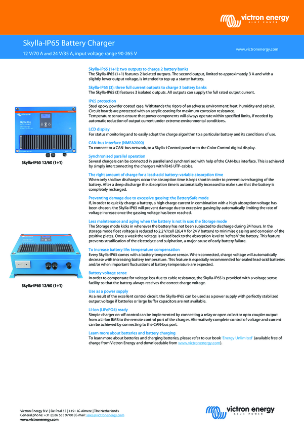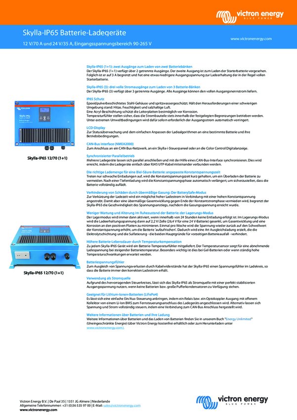 Ładowarka akumulatorów kwasowo-ołowiowych Victron Energy SKY012070000 12 V 70 A
