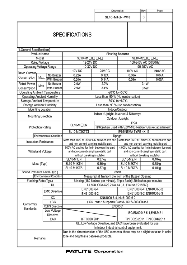 Sygnalizator świetlny Patlite SL15-M1KTN-R czerwony światło migające 12 V/DC, 24 V/DC
