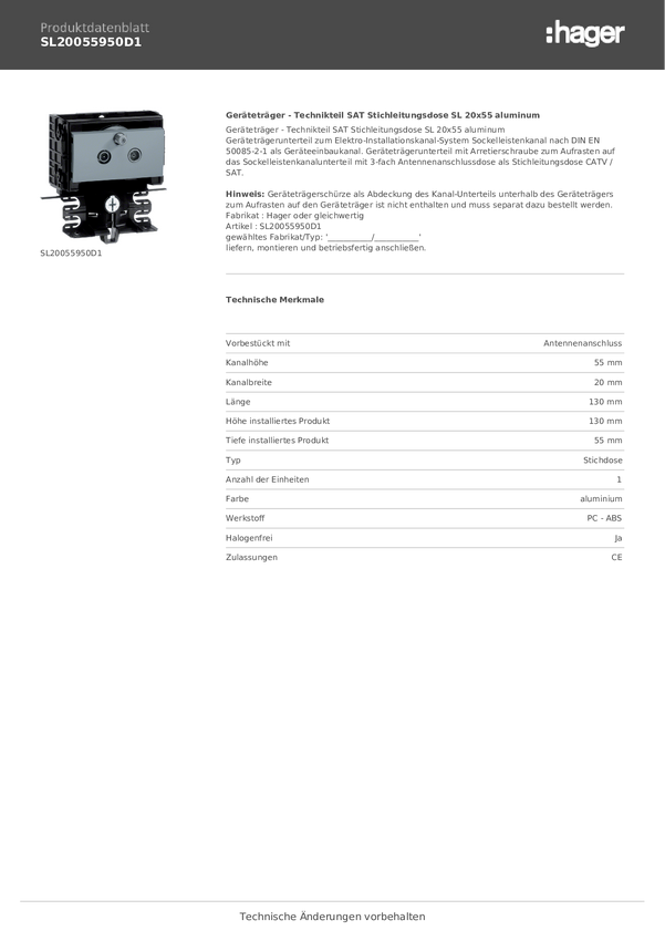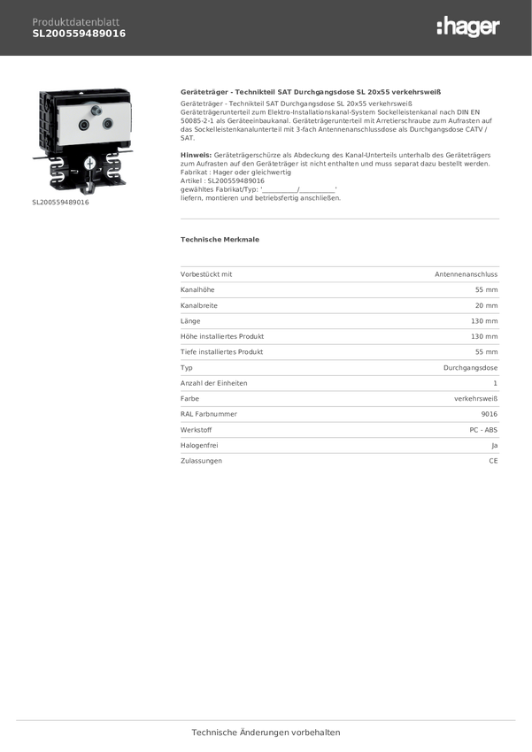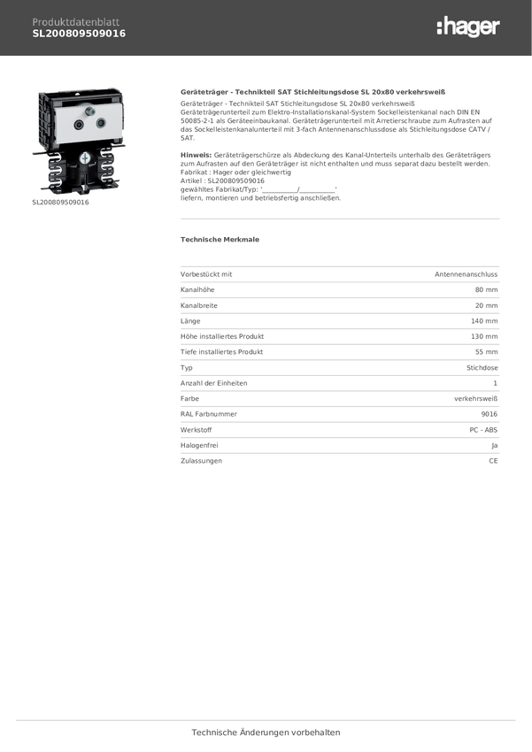 Hager SL200809409010 SL200809409010, 1x -04012740852890