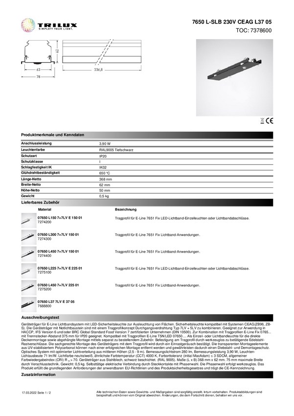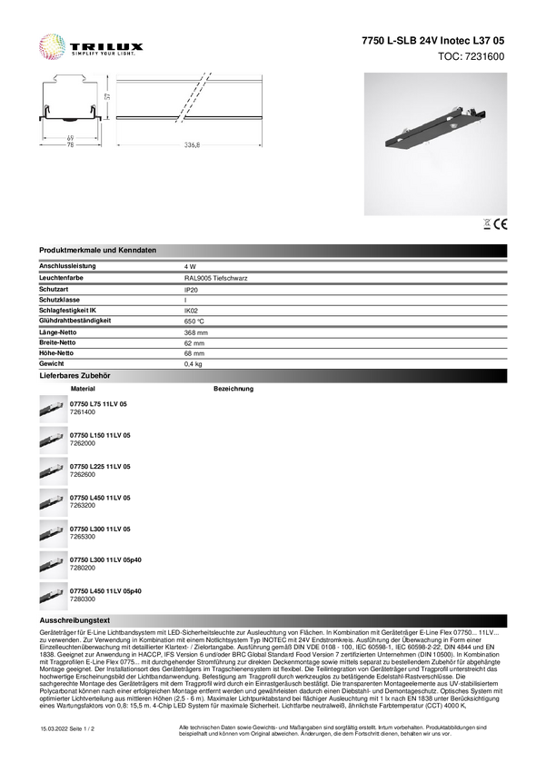 Trilux 7227800 7650 L-SLB #7227800 Ciąg świetlny 5.7 W LED biały 1 szt.