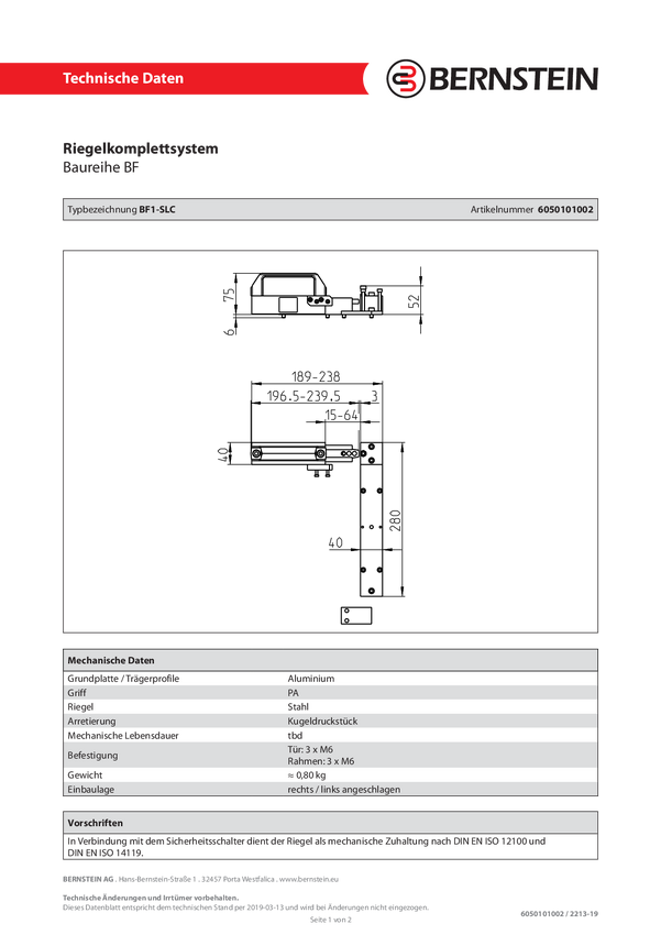 Bernstein 6050101002 BF1-SLC Rygiel drzwi 1 szt.