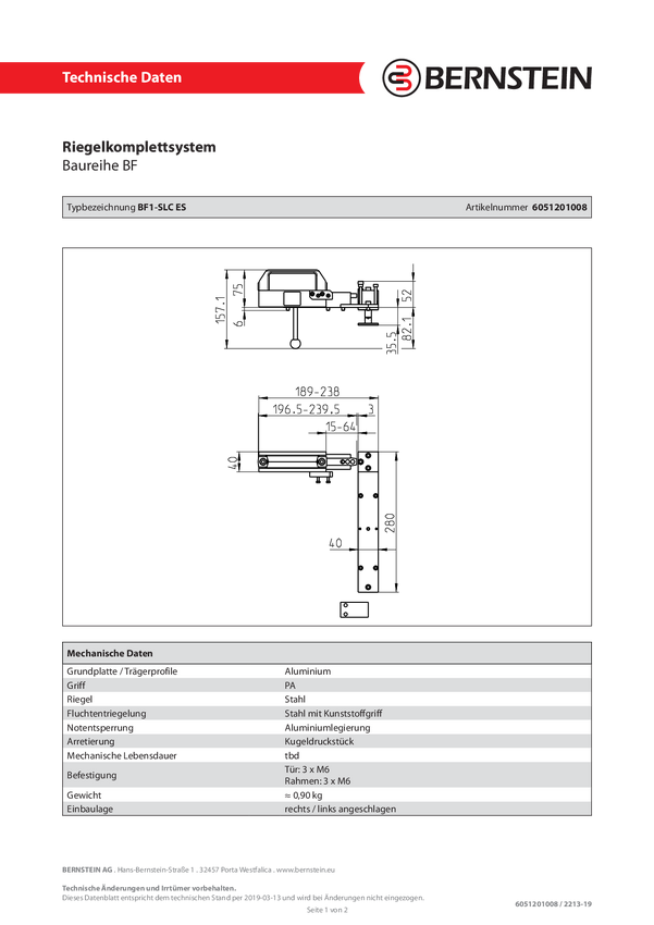 Bernstein 6051201008 BF1-SLC ES Rygiel drzwi 1 szt.