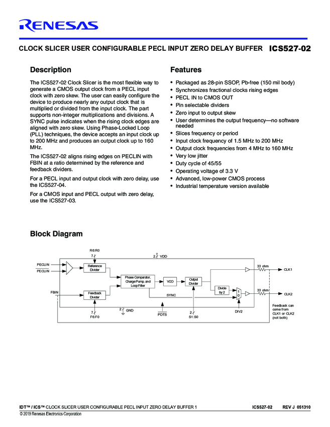 Clock Slicer User Configurable PECL Input Zero Delay Buffer