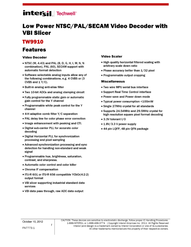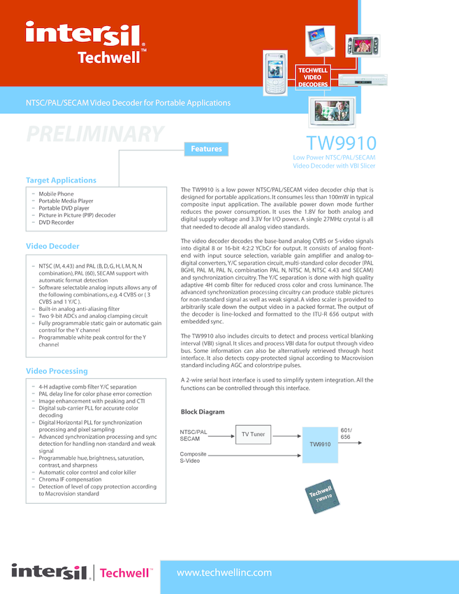 Low Power NTSC/PAL/SECAM Video Decoder with VBI Slicer