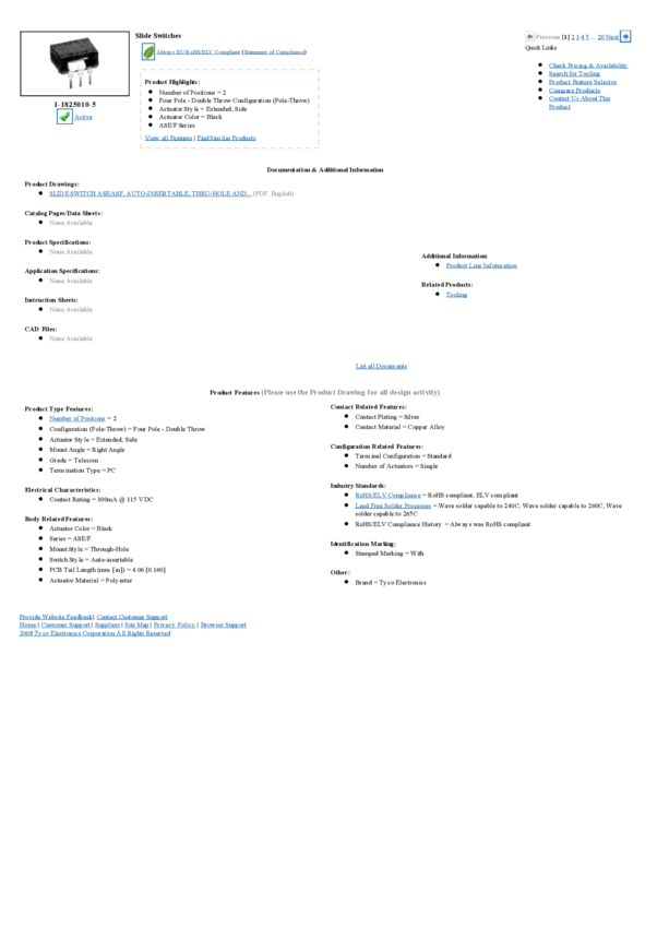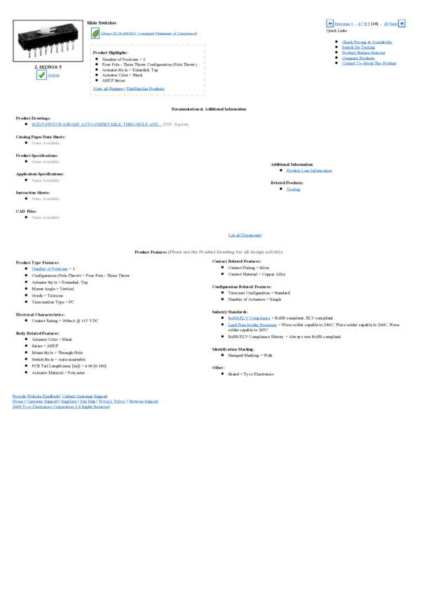 Switch Slide 4PDT Side Slide 0.3A 115VDC PC Pins Thru-Hole Tube