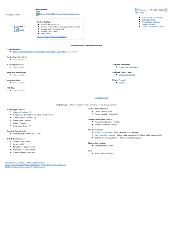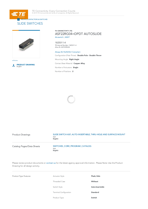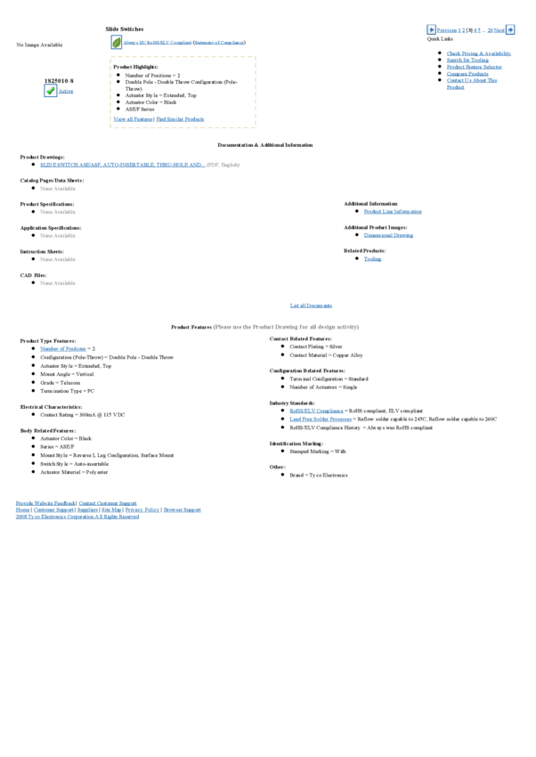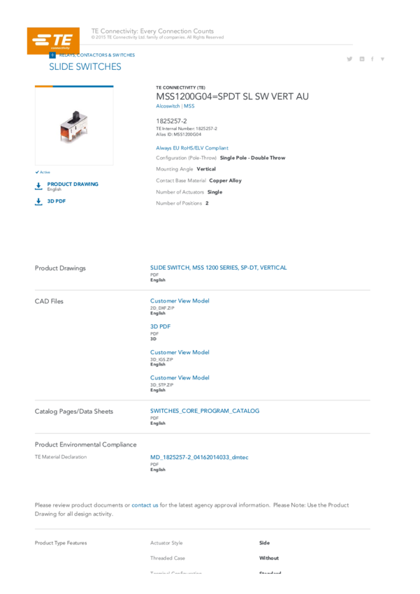 Switch Slide SPDT Top Slide 20VAC 20VDC 0.4VA PC Pins Thru-Hole Tray