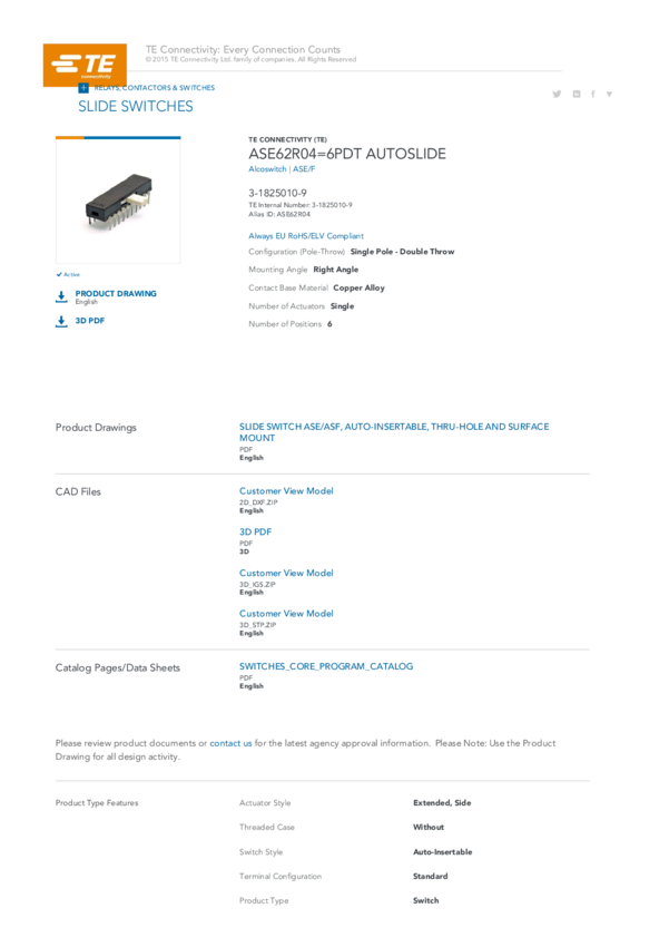 Switch Slide 6PDT Side Slide 0.3A 115VAC PC Pins Thru-Hole Tube