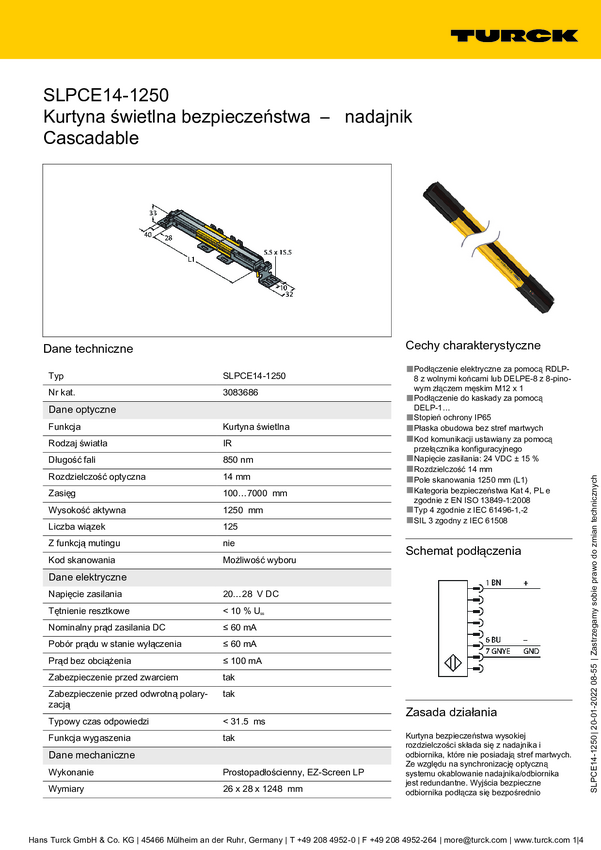 Turck Kurtyna świetlna SLPCE14-1250 Wysokość ochronna 1250 mm