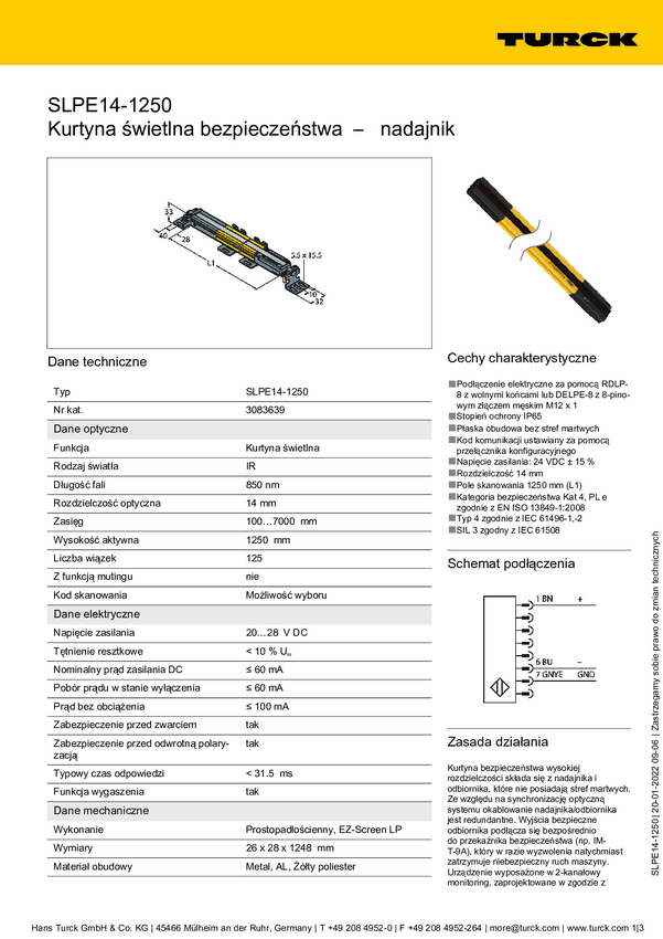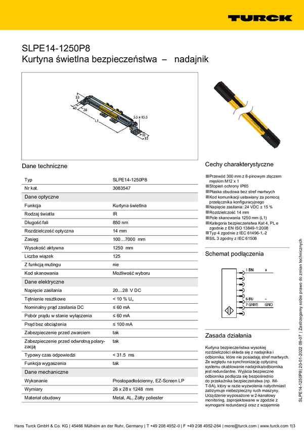 Turck Kurtyna świetlna SLPE14-1250 Wysokość ochronna 1250 mm