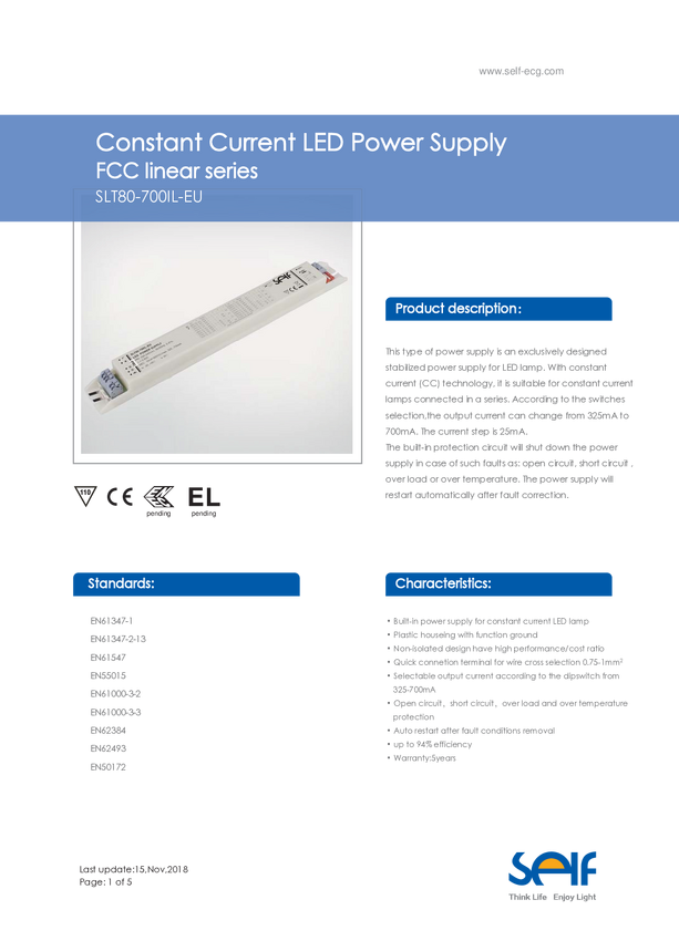 Self Electronics SLT80-700IL-EU Sterownik LED Stałonaprądowy 80 W 325 - 700 mA 60 - 246 V/DC Regulowany, Zabezpieczenie