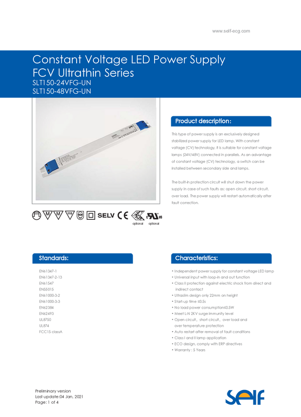 Self Electronics SLT96-24VLC-UN Sterownik LED Stałonapięciowy 96 W 0 - 4 A 24.0 V/DC Możlowość stosowania w meblach, nie