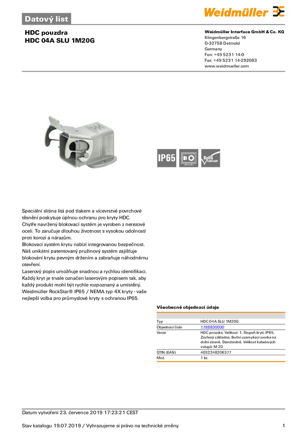 Weidmüller HDC 04A SLU 1M20G 1788830000 Obudowa podstawowa 1 szt.