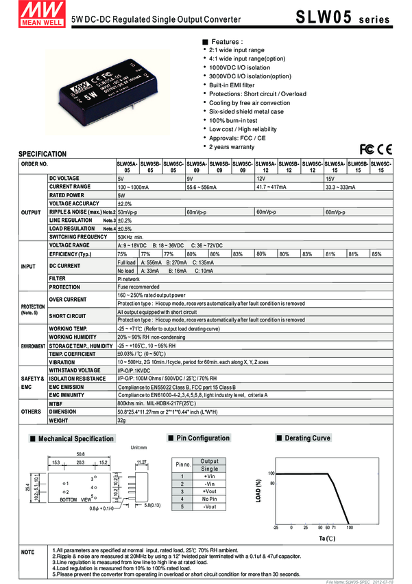 Module DC-DC 1-OUT 5V 1A 5W 5-PIN DIP