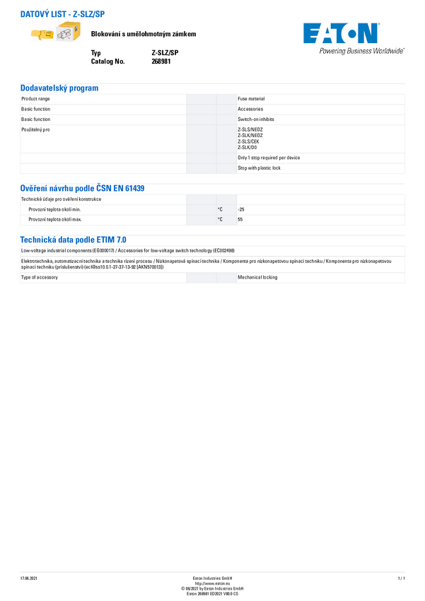 Blokada rozłączników Eaton Z-SLZ/SP 1 szt.