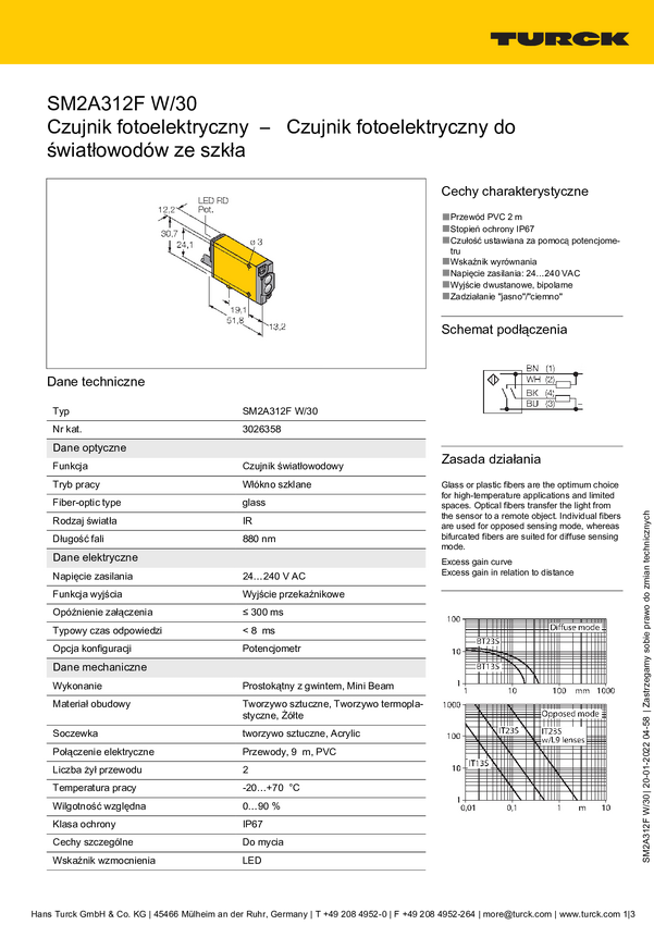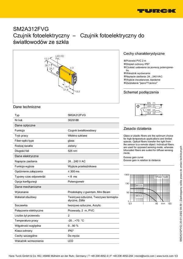 Turck 3026358 SM2A312F W/30 Czujnik światłowodowy 1 szt.