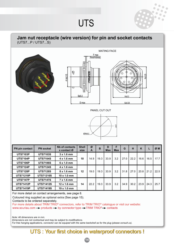 Złącze wtykowe męskie S-UTS71210P, 10 kontaktów, do stosowania z pinami S-SM24W3S26