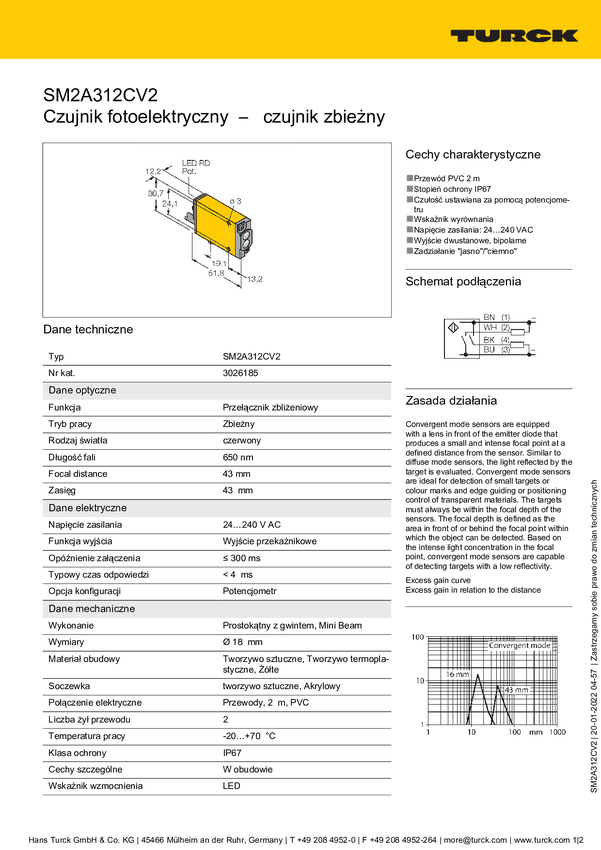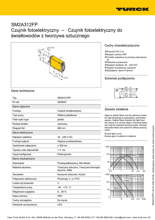 Czujnik światłowodowy Turck SM2A312FP 3026057 1 szt.
