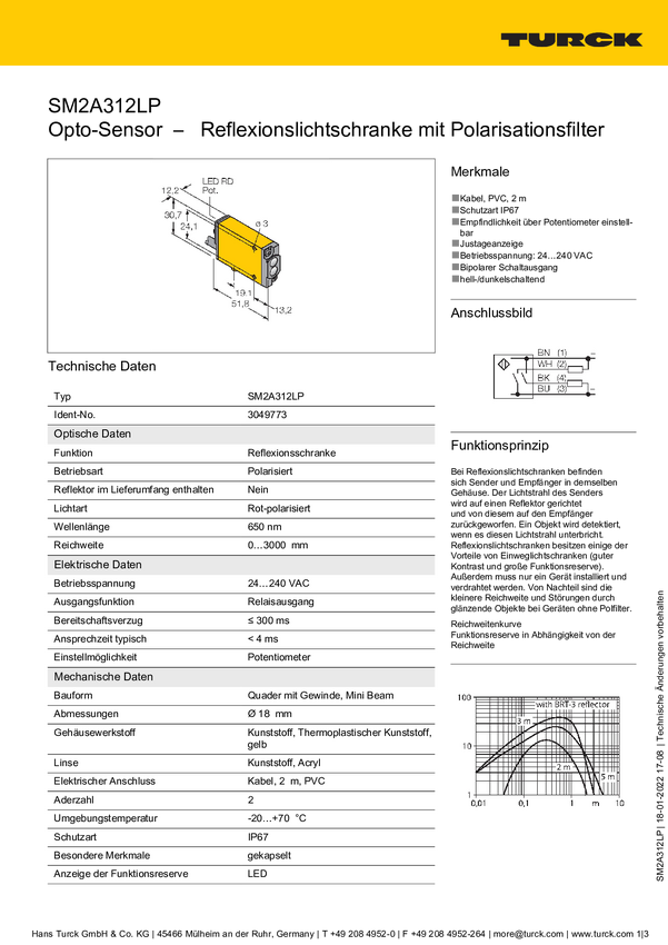 Fotokomórka odbiciowa Turck SM2A312LP 3049773 1 szt.