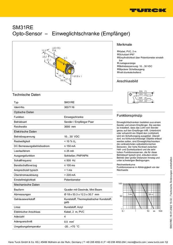 Bezzwrotny czujnik fotoelektryczny Turck SM31RE 3037116 1 szt.