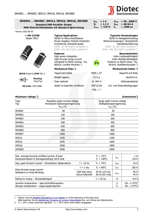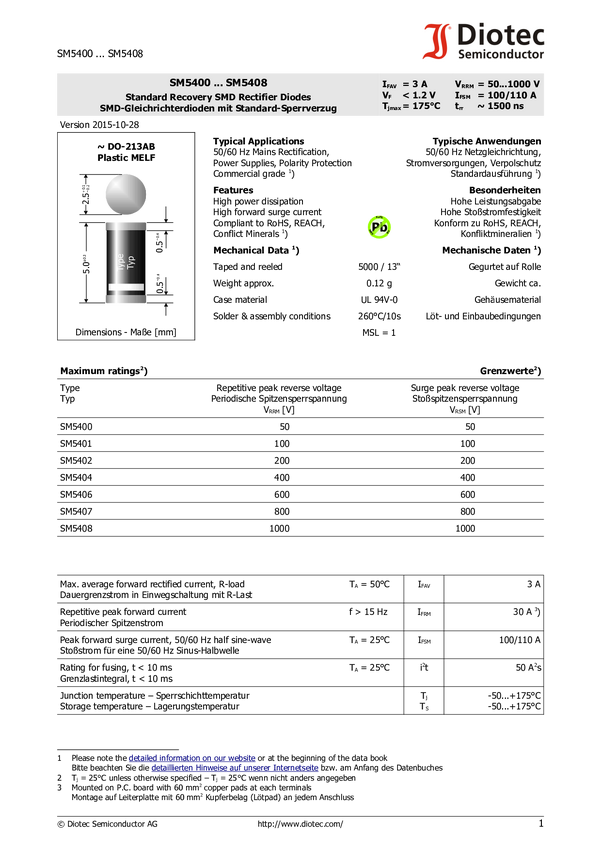 Dioda prostownicza Diotec SM5407 N/A N/A