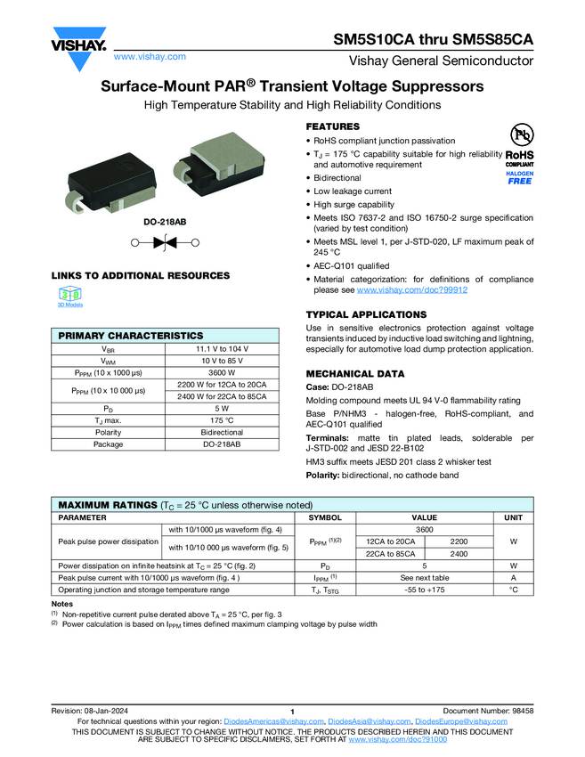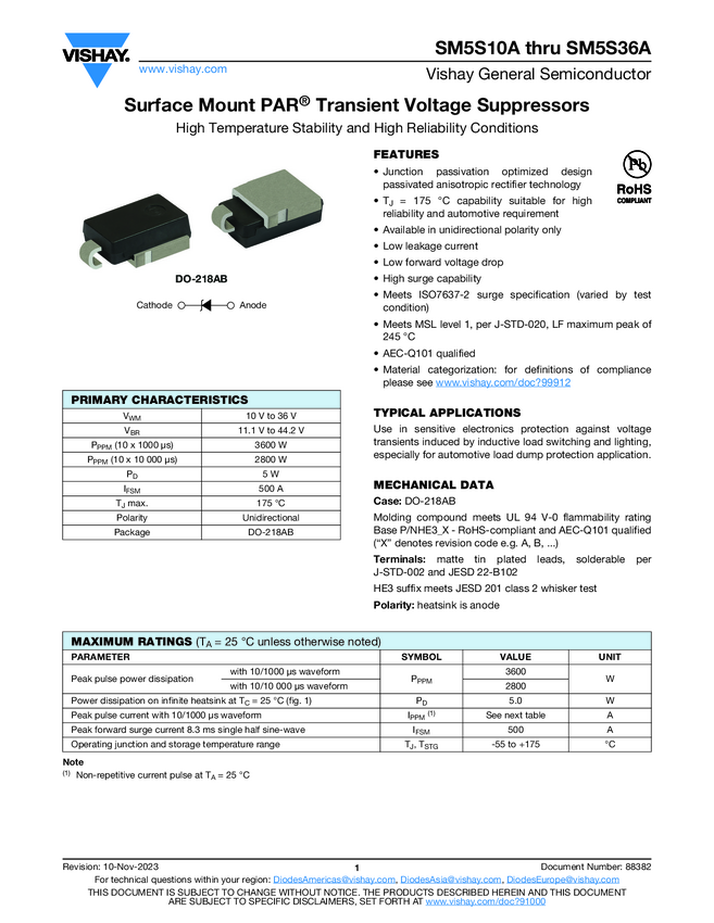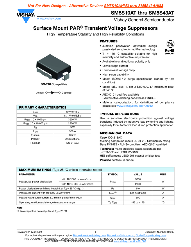 Surface-Mount PAR® Transient Voltage Suppressors High Temperature Stability and High Reliability Conditions