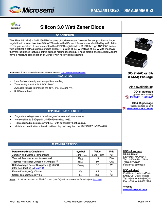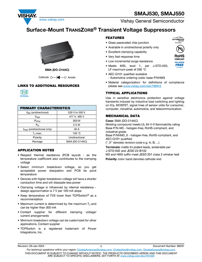 Surface-Mount TransZorb® Transient Voltage Suppressors