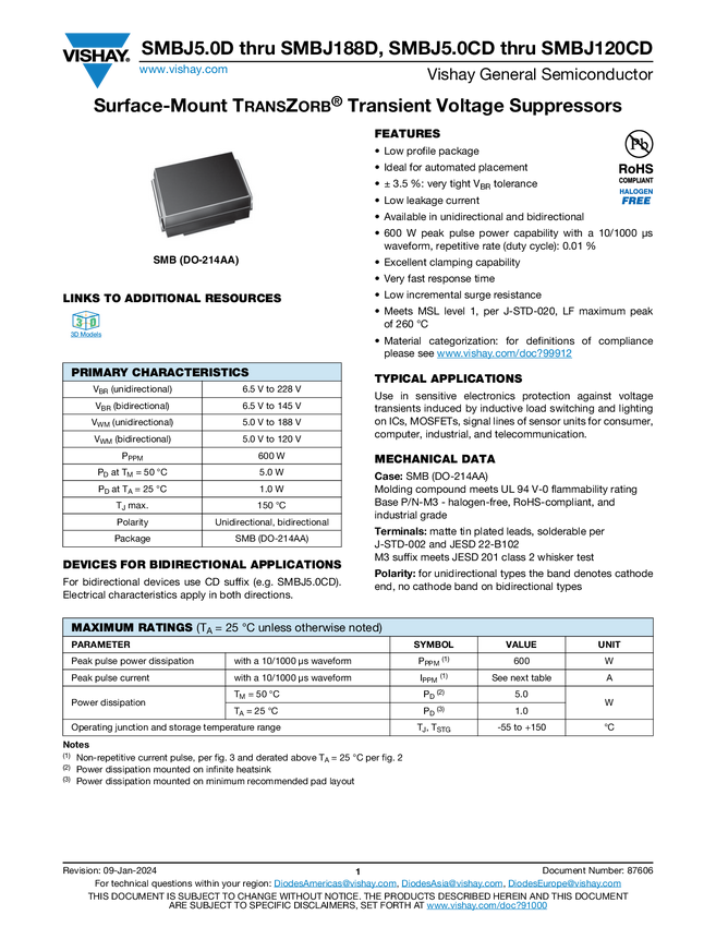 Surface-Mount TransZorb® Transient Voltage Suppressors