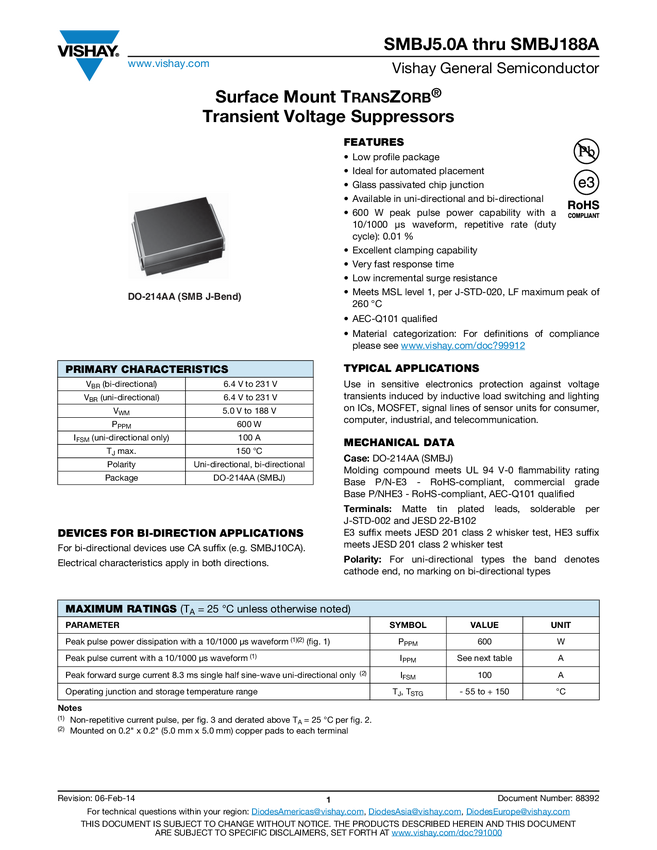 SMBJ5.0 thru SMBJ170A