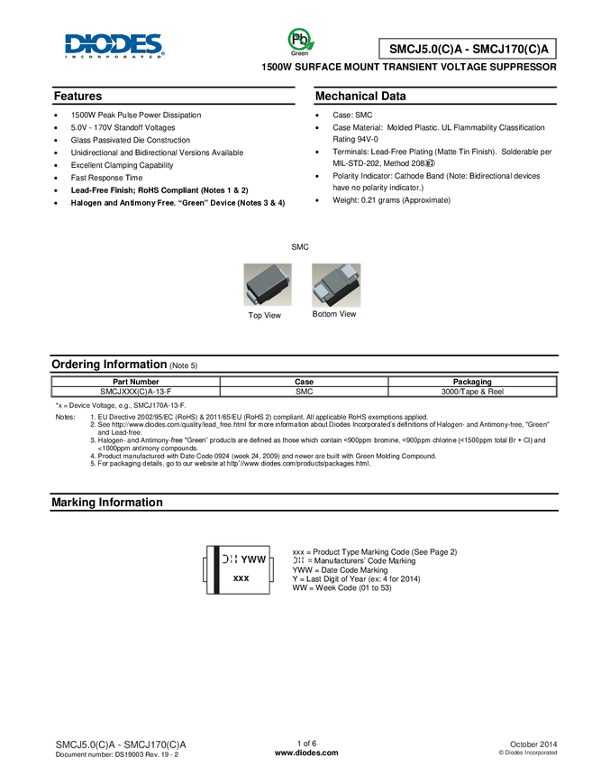 Diode TVS Single Uni-Dir 8.5V 1.5KW 2-Pin DO-214AB
