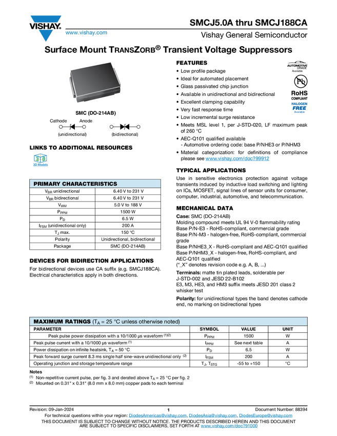 Surface Mount TransZorb® Transient Voltage Suppressors