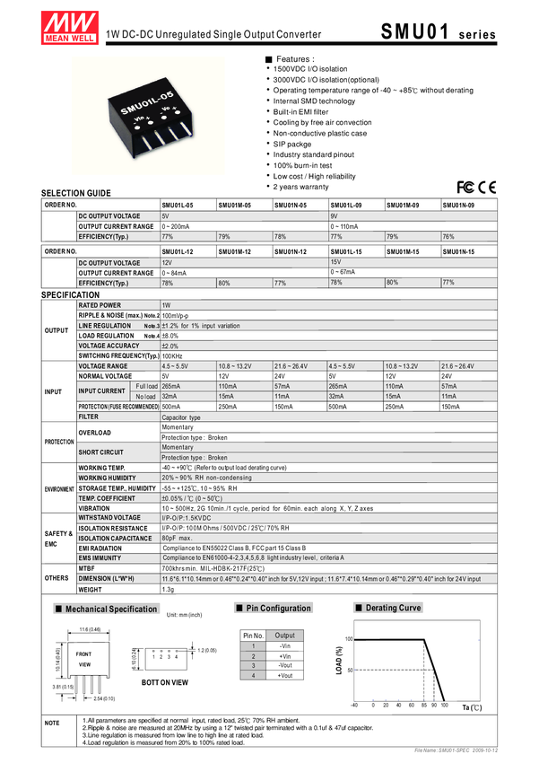 Module DC-DC 1-OUT 5V 0.2A 1W 4-PIN DIP