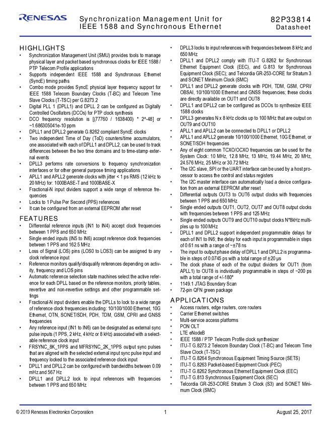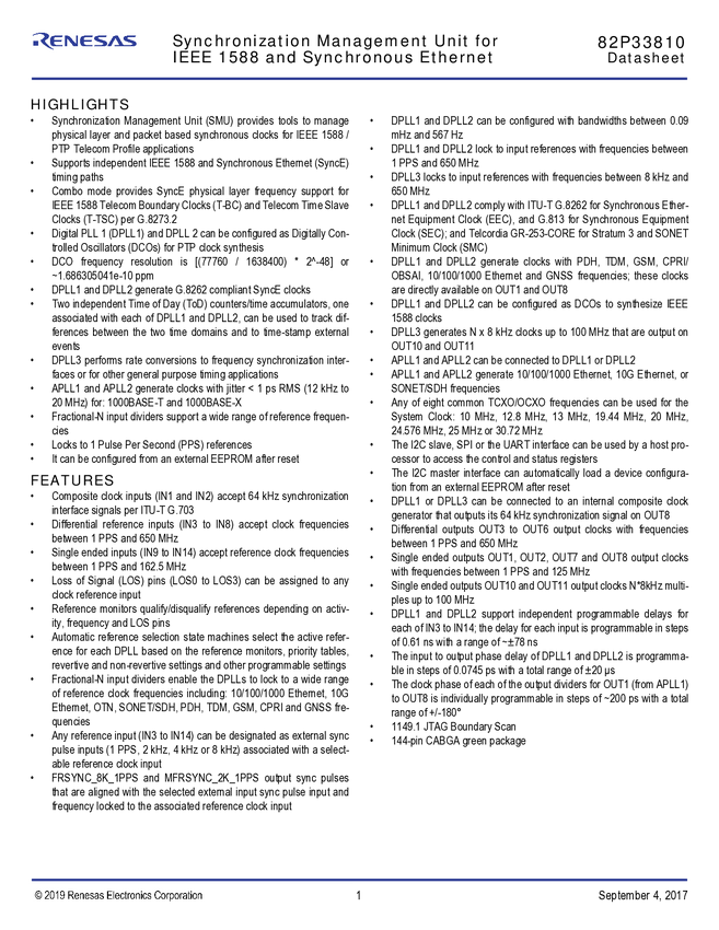 Synchronization Management Unit (SMU) for IEEE 1588 and Synchronous Ethernet