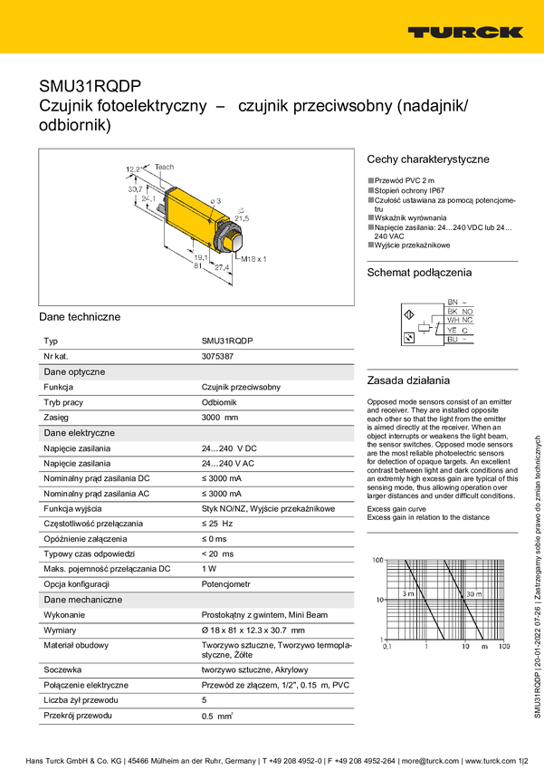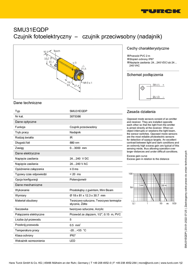 Bezzwrotny czujnik fotoelektryczny Turck SMU31RQDP 3075387 1 szt.