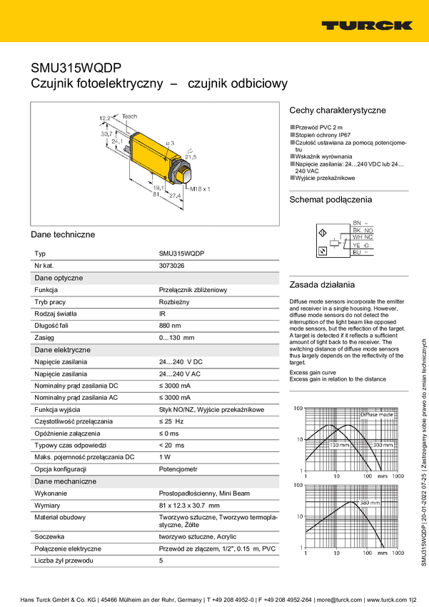 Czujnik dyfuzyjny Turck SMU315WQDP 3073026 1 szt.