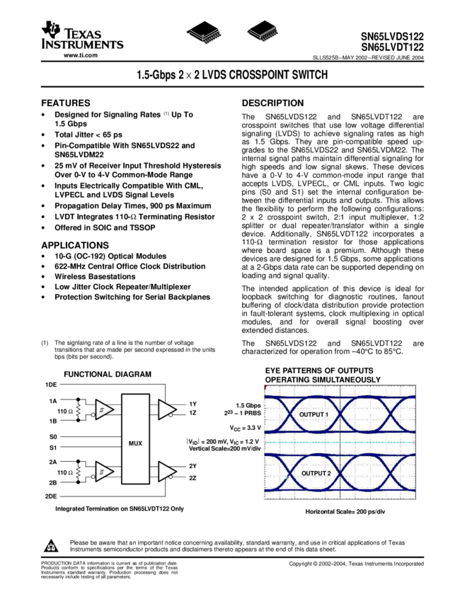 Digital Crosspoint Single 2x2 1.5Gbps 16-Pin TSSOP Tube