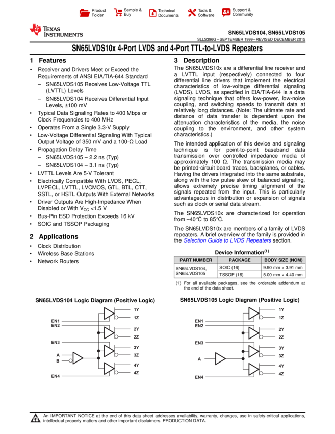 LVDS Receiver 0.454V 16-Pin SOIC T/R